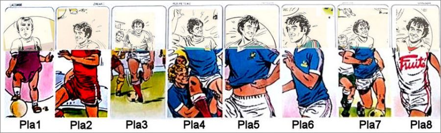 En bas du poster il y a 8 images style BD représentant Michel Platini référencées Pla1 à Pla8