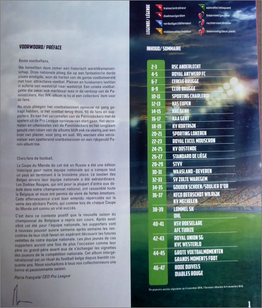 Football - Pro League 2019 - Sticker Album Panini Belgique