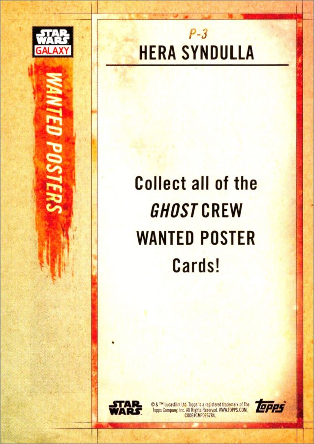Topps : 1 à 100, + O1 à O10 (Journey of Ahsoka), P-1 à P-6 (Poster Wanted), TP-1 à TP-6 (Propaganda), GP-1 à GP-6 (Galaxy Puzzle), C-1 à C-5 (Légends)
