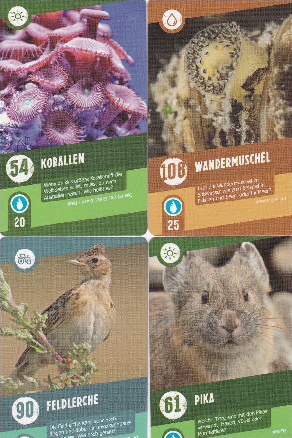 Les cartes et les autocollants forment un ensemble (l'autocollant se détache de la carte) l'échange porte sur les cartes et les autocollants non décollés de leur supportLE JEU DU DÉFENSEUR DE L'ENVIRONNEMENTTu as besoin du jeu de cartes complet pour jouer à ce jeu palpitant. Rassemble vite toutes les cartes ! Le jeu est complet si tu disposes de toutes ces cartes :