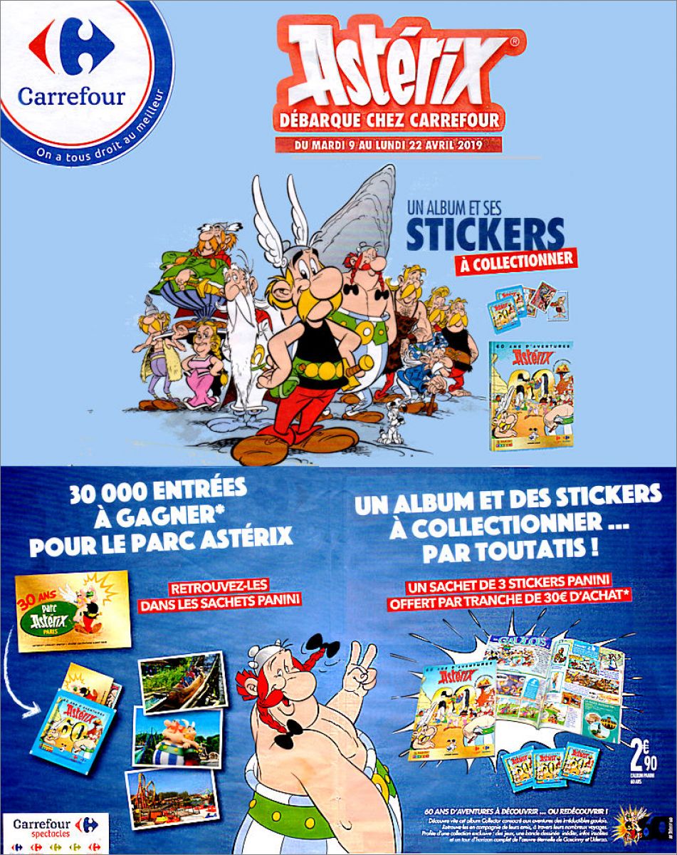 Pour fêter les 60 ans d'aventures des célèbres héros de Goscinny et Uderzo, Astérix débarque chez Carrefour du 9 avril au 27 mai 2019.