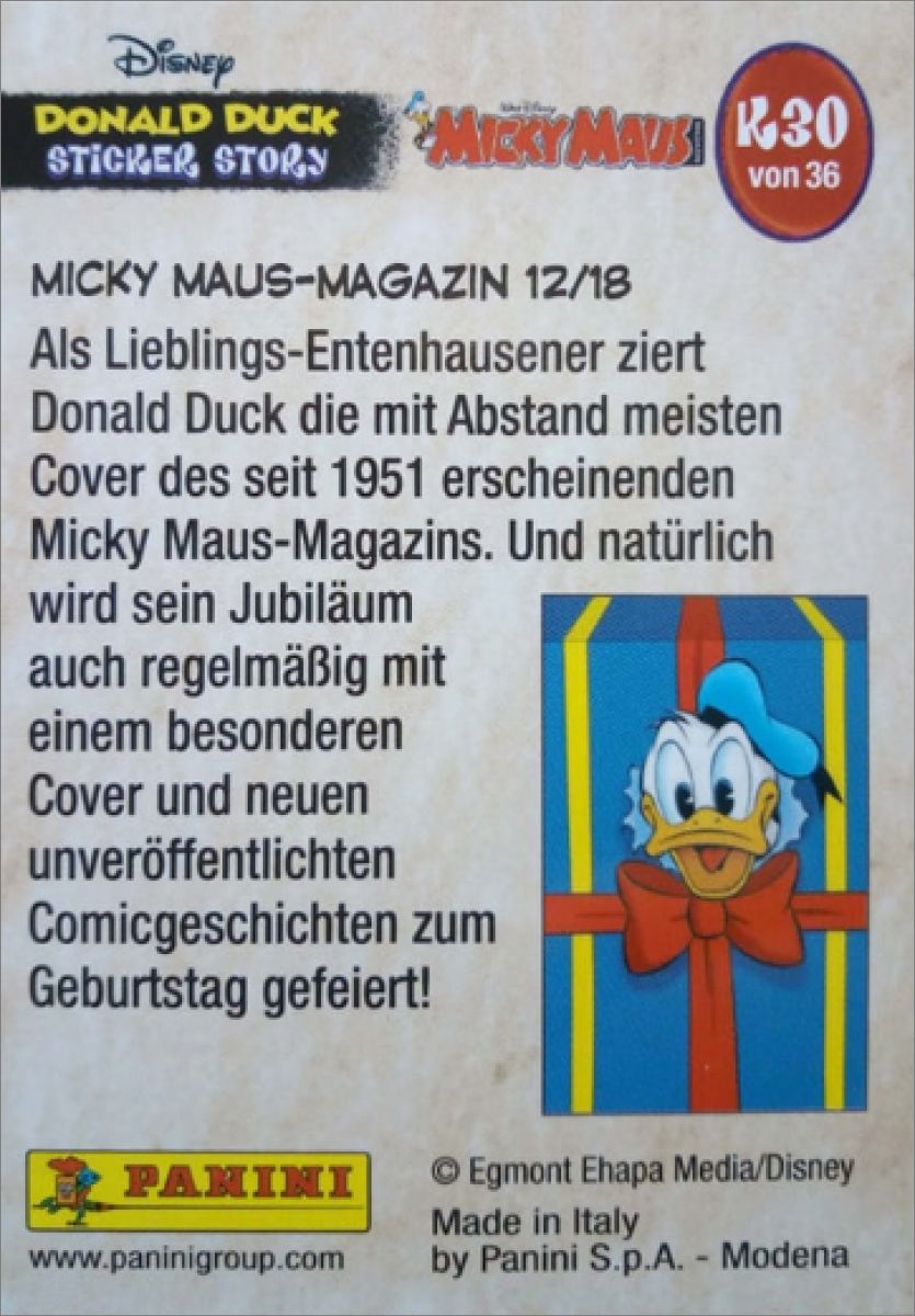 ALLEMAGNE/AUTRICHE: Donald Duck Sticker Story 85 years