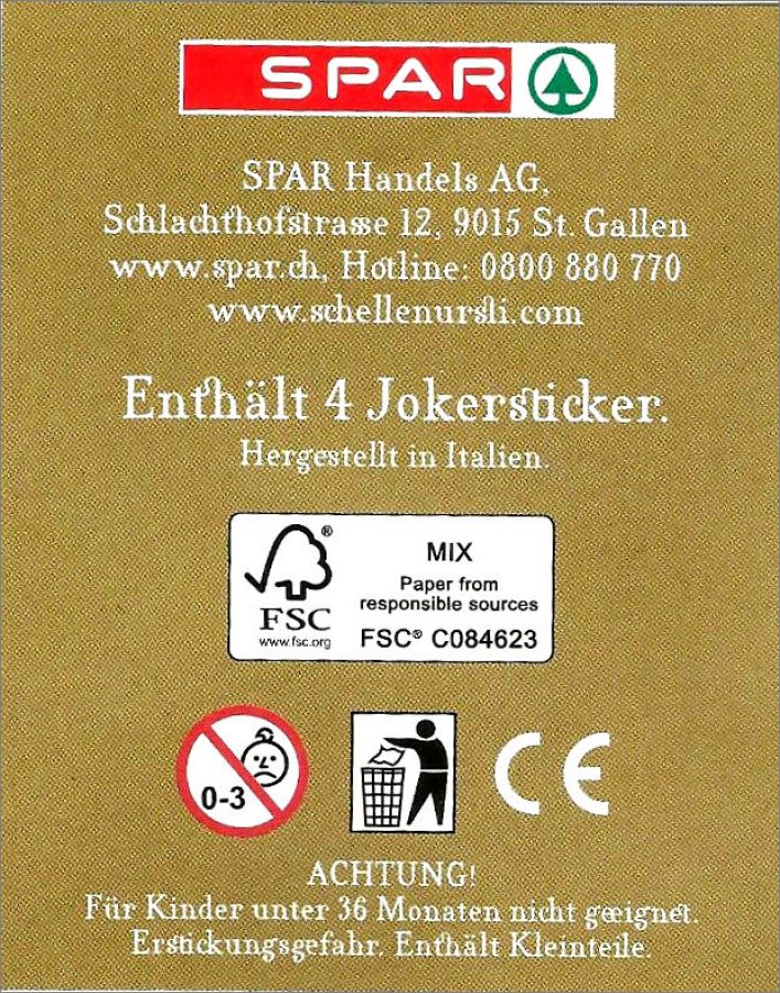 Le livre de collection conçu dans le style original Schellen Ursli est disponible sur tous les marchés SPAR. À compter du 14 septembre 2015, vous recevrez gratuitement un paquet de quatre autocollants Schellen-Ursli par CHF 10.- d'achat. Ceux-ci peuvent également être obtenus pour CHF 1.-