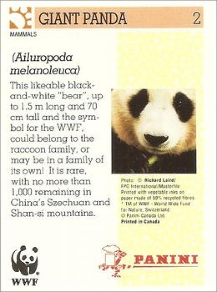 Wildlife in Danger WWF - 100 Collector Cards Panini 1992