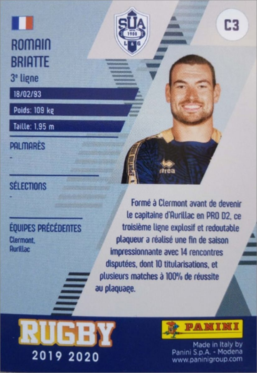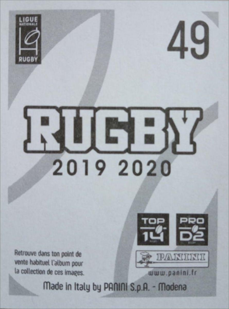 RUGBY 2020 - Saison 2019-20 - Top14 Pro D2 - Sticker Panini
