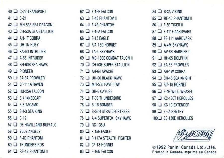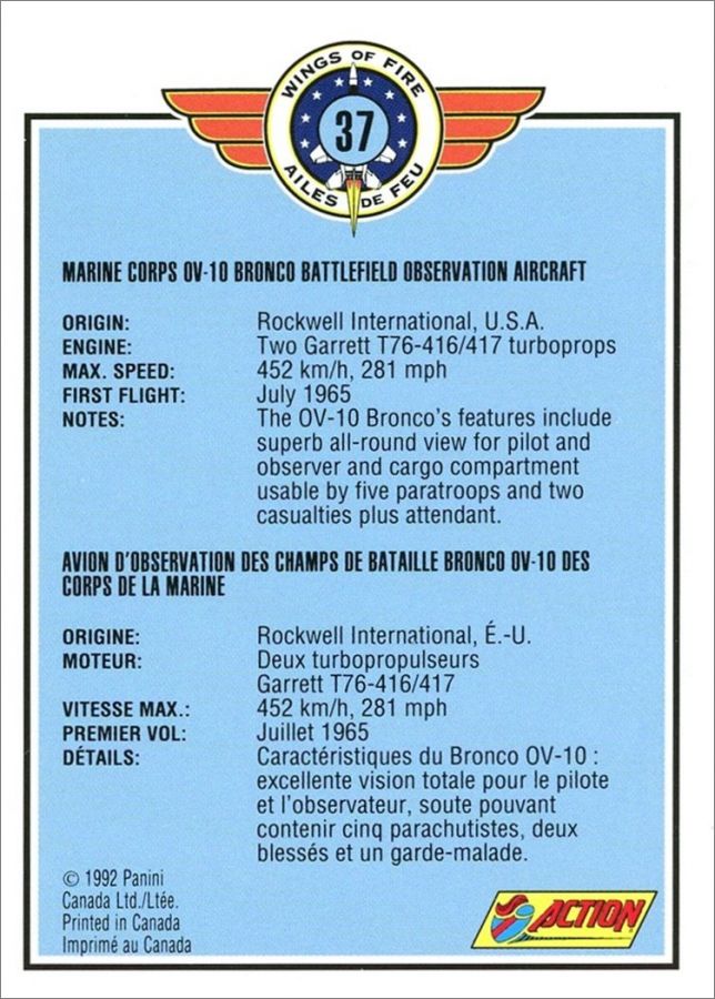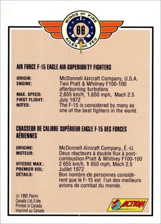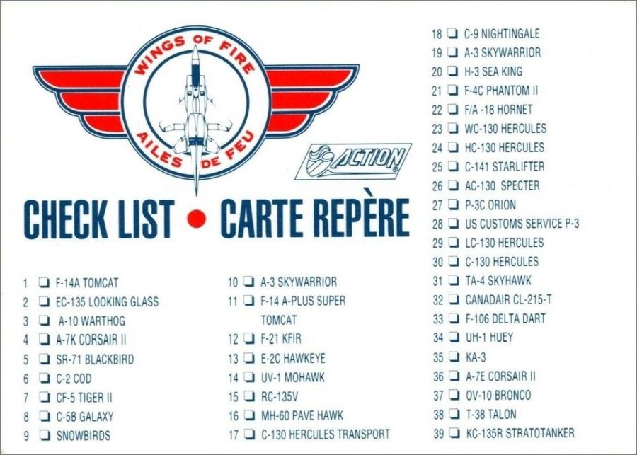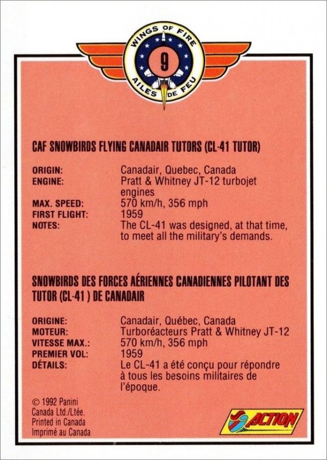 Collection "Wings of Fire / Ailes de Feu" éditée en 1992 par Panini Canada en collaboration avec Action Cards