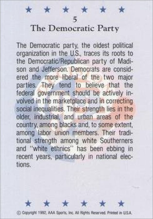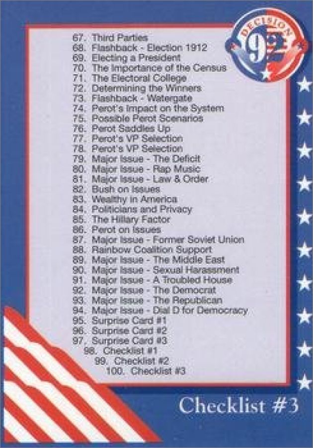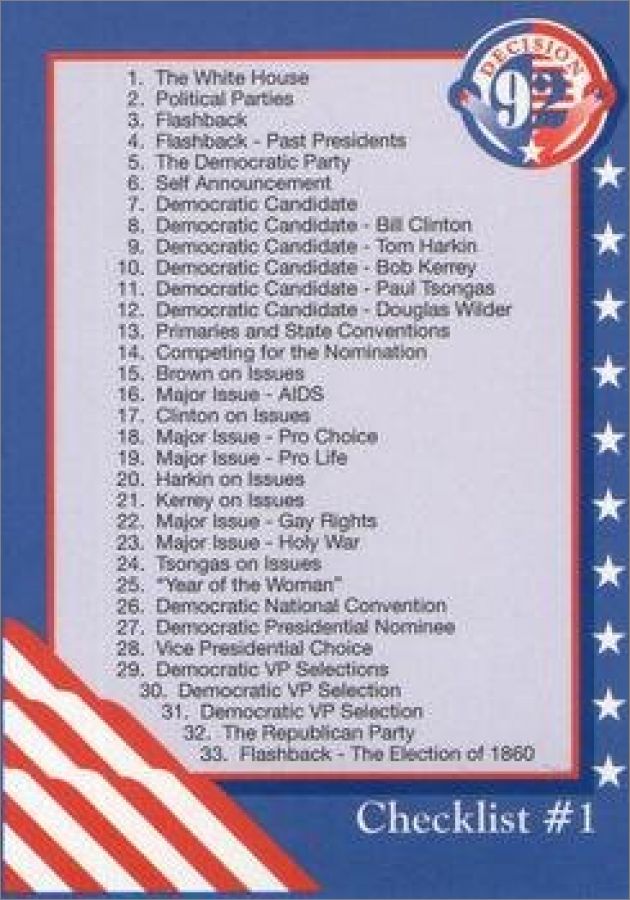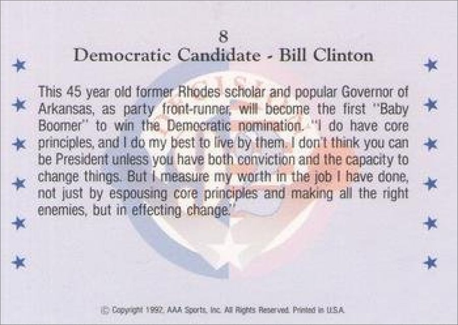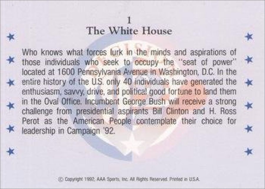 Collection de trading cards sortie en 1992 par l'éditeur " Wild Card" (fabrication par AAA Sports) pour l'élection présidentielle américaine de 1992