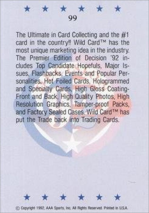 Decision '92 - Trading Cards Wild Card AAA Sports - 1992 USA
