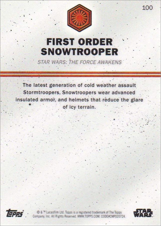 Topps : 1 à 100, B1 à B20, TC1 à TC13, CA1 à CA20, R1 à R7, GM1 à GM20, FQ1 à FQ20, DA1 à DA20