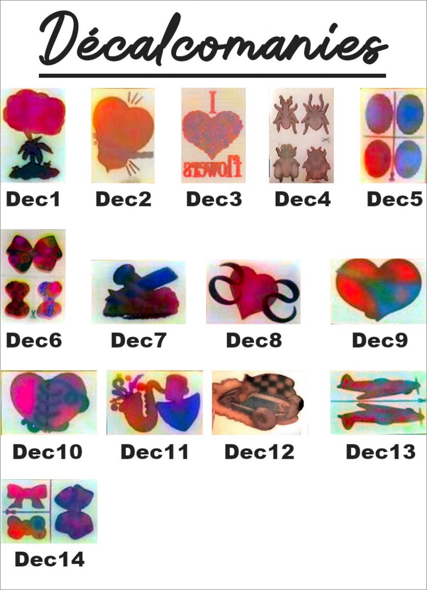Images Décalcomanies *dec : Dec1, Dec2, Dec3, Dec4, Dec5, Dec6, Dec7, Dec8, Dec9, Dec10, Dec11, Dec12, Dec13, Dec14