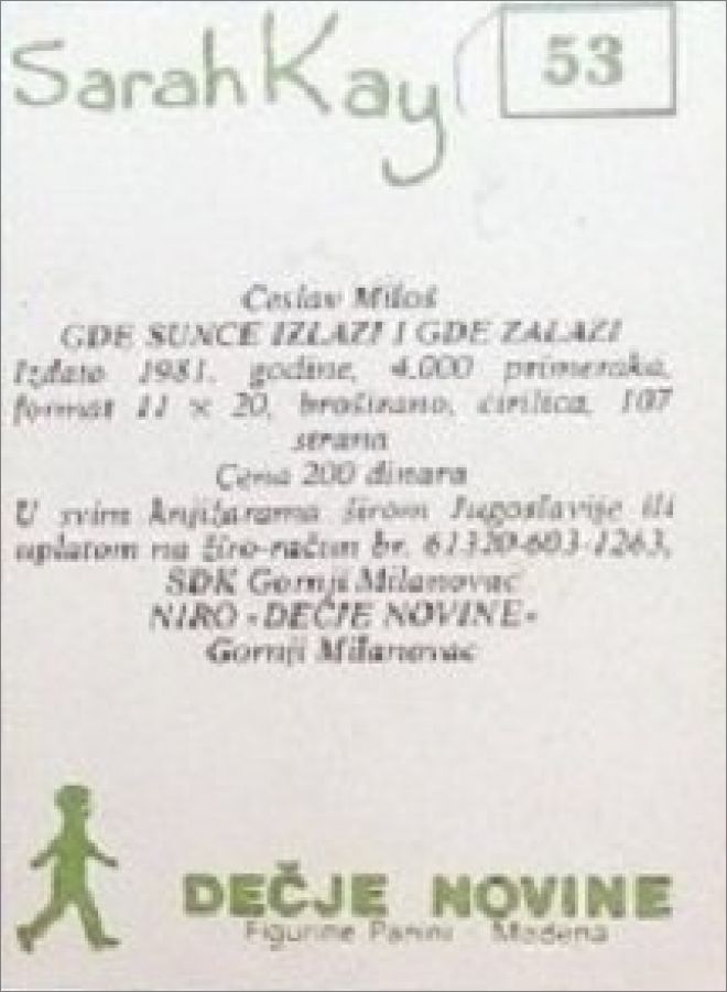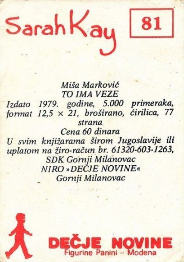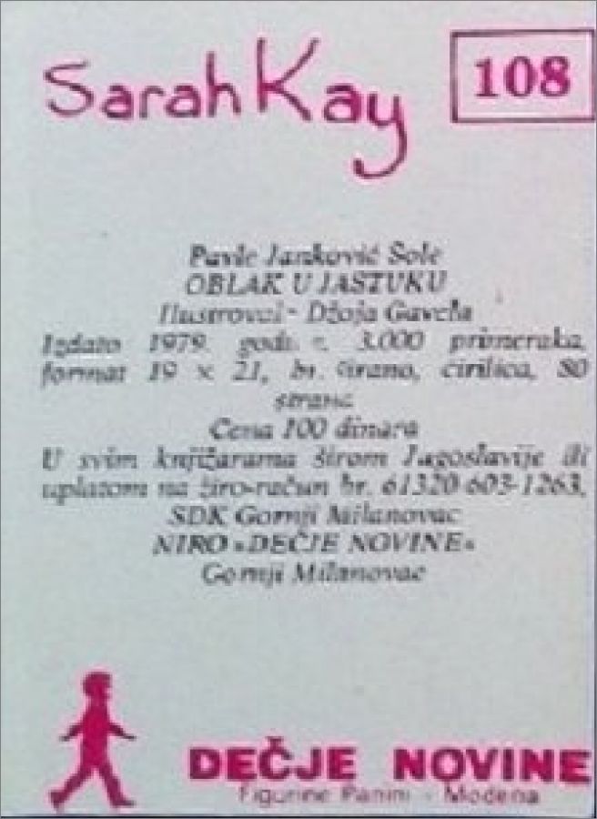 Spomenak (Sarah Kay) - Sticker Album - Decje Novine - 1981