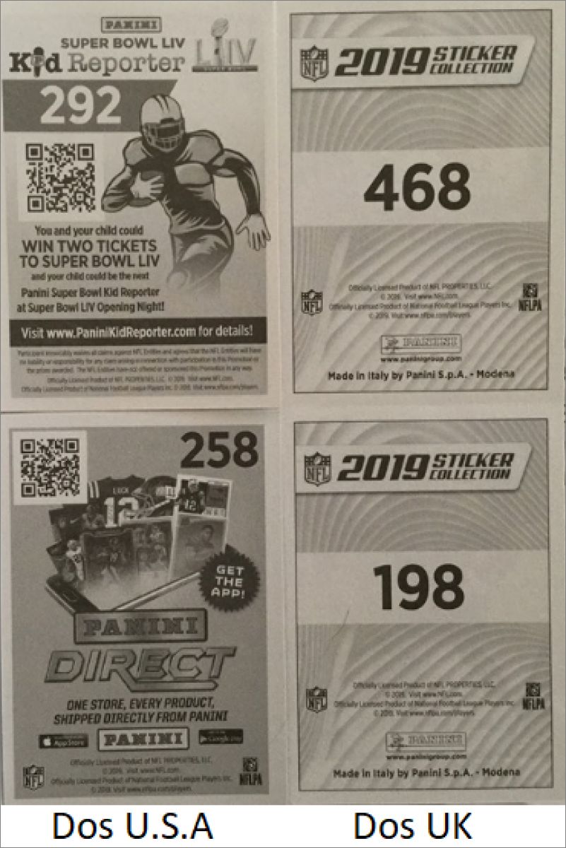 Les stickers semblent les mêmes aux USA et au Royaume-Uni mais le dos diffère (voir scan)