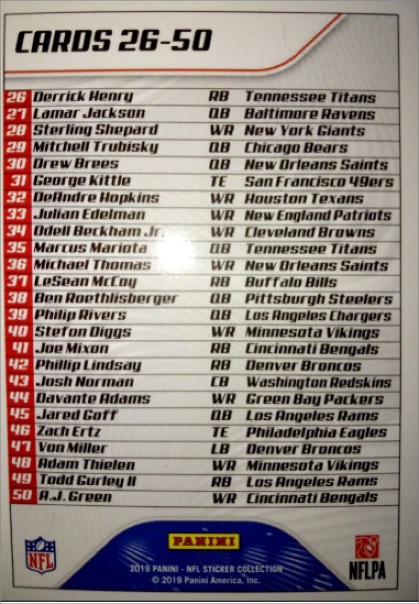 NFL 2019 - Sticker Collection - Panini - Royaume-Uni - Part1
