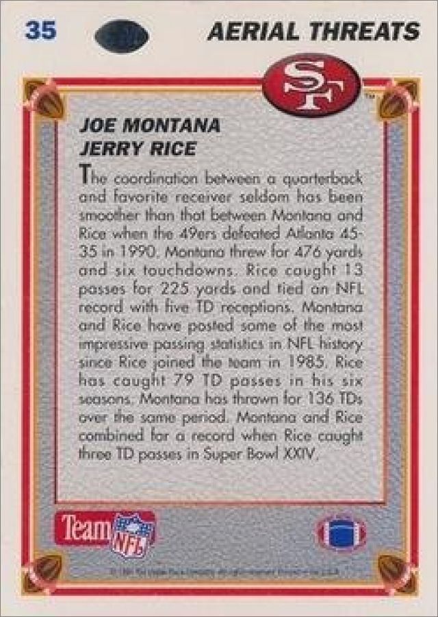 Les cartes Heroes (référencées H1 à H18) numérotées de 1 à 9 concerne Joe MONTANA et celles de 10 à 18 Joe NAMATH + 1 carte non numérotée