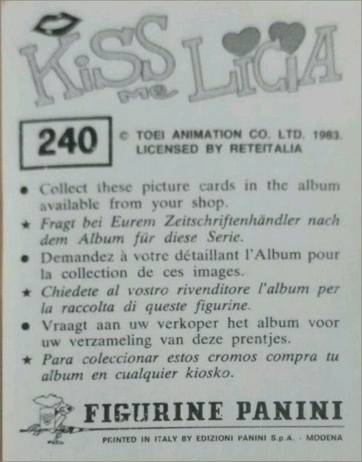 Kiss me Licia (Embrasse-moi Lucile) Figurine Panini 1985