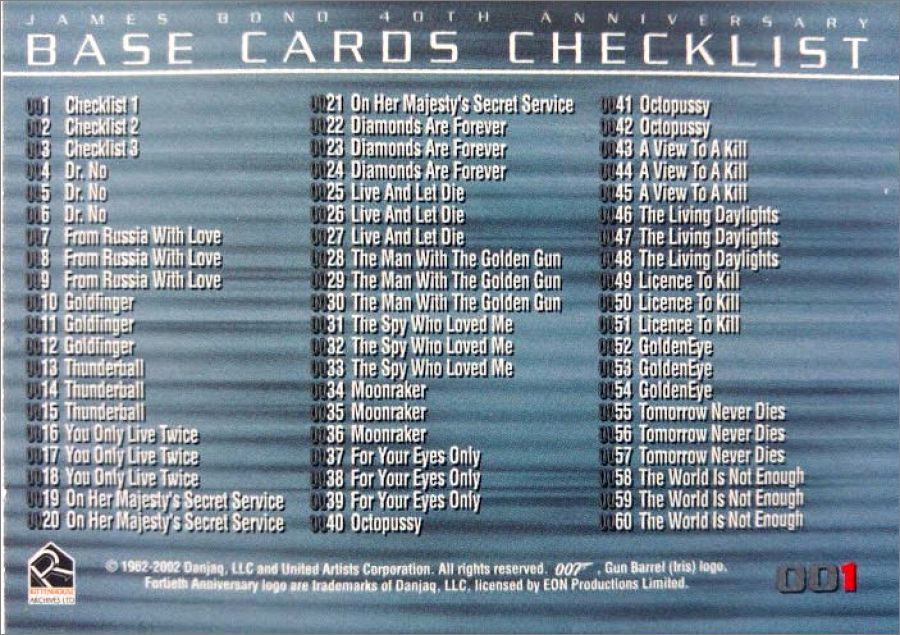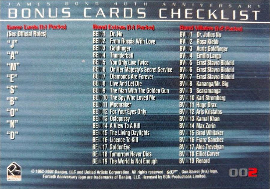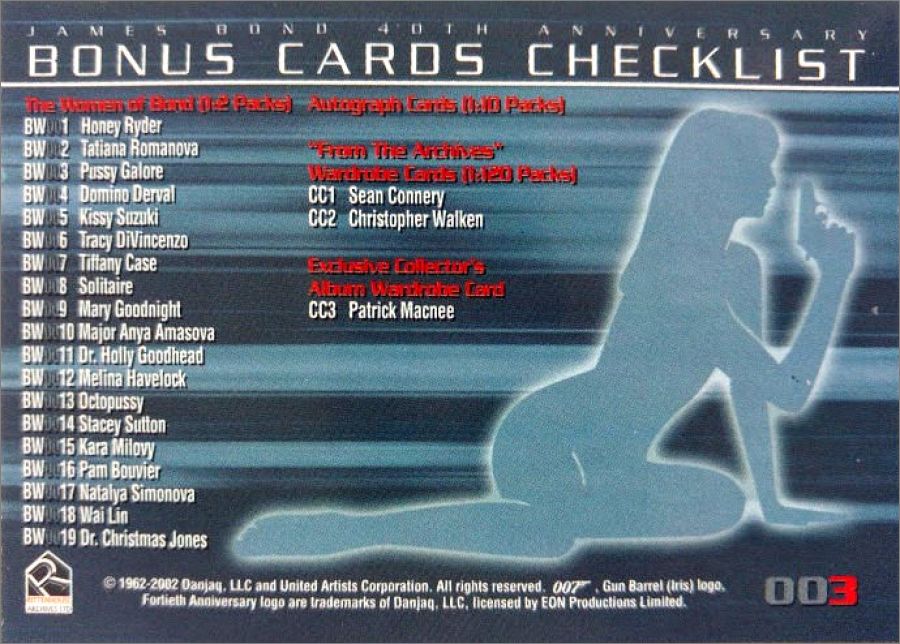 James Bond 40th Anniversary - Rittenhouse Trading Cards 2002