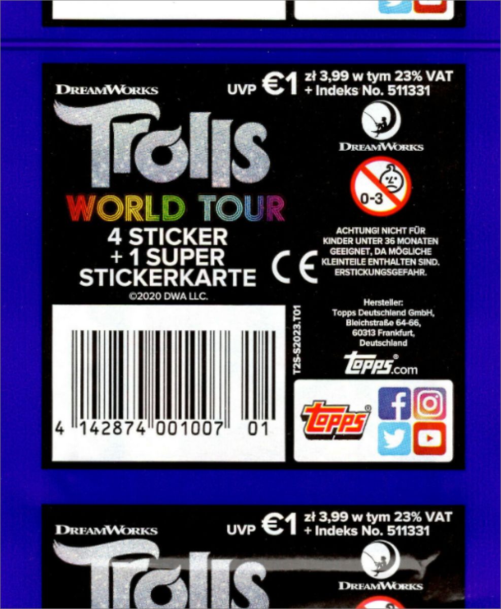 Trolls World Tour - DreamWorks - Sticker Album Topps - 2020