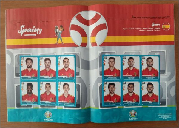 Il consiste en 12 stickers inédits de la sélection espagnole (deux planches de six) numérotés ESP A1-A12;