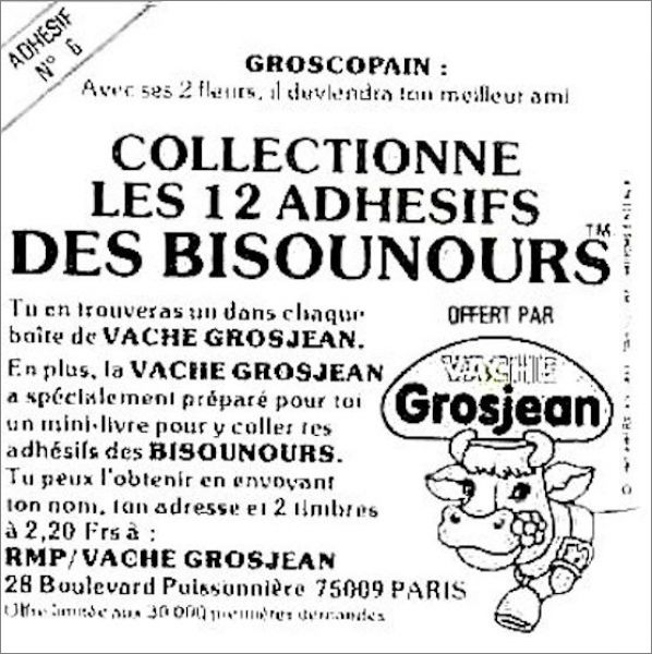 Bisounours - 12 Adhésifs à collectionner Vache Grosjean 1987
