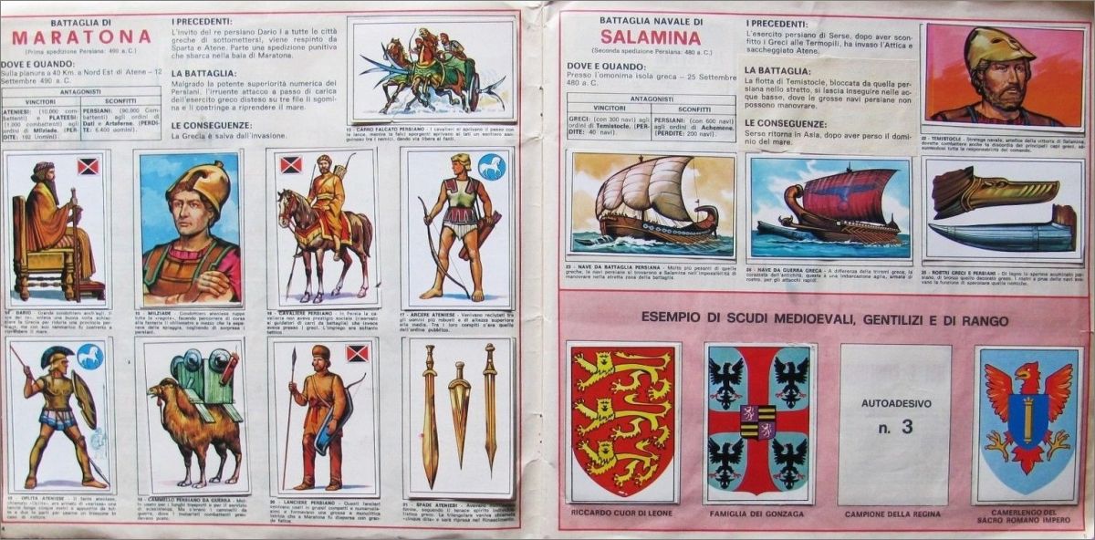 Les 464 images dites normales étaient à coller avec un tube de colle alors que les 38 qui représentent les drapeaux, blasons, décorations militaires étaient autocollantes