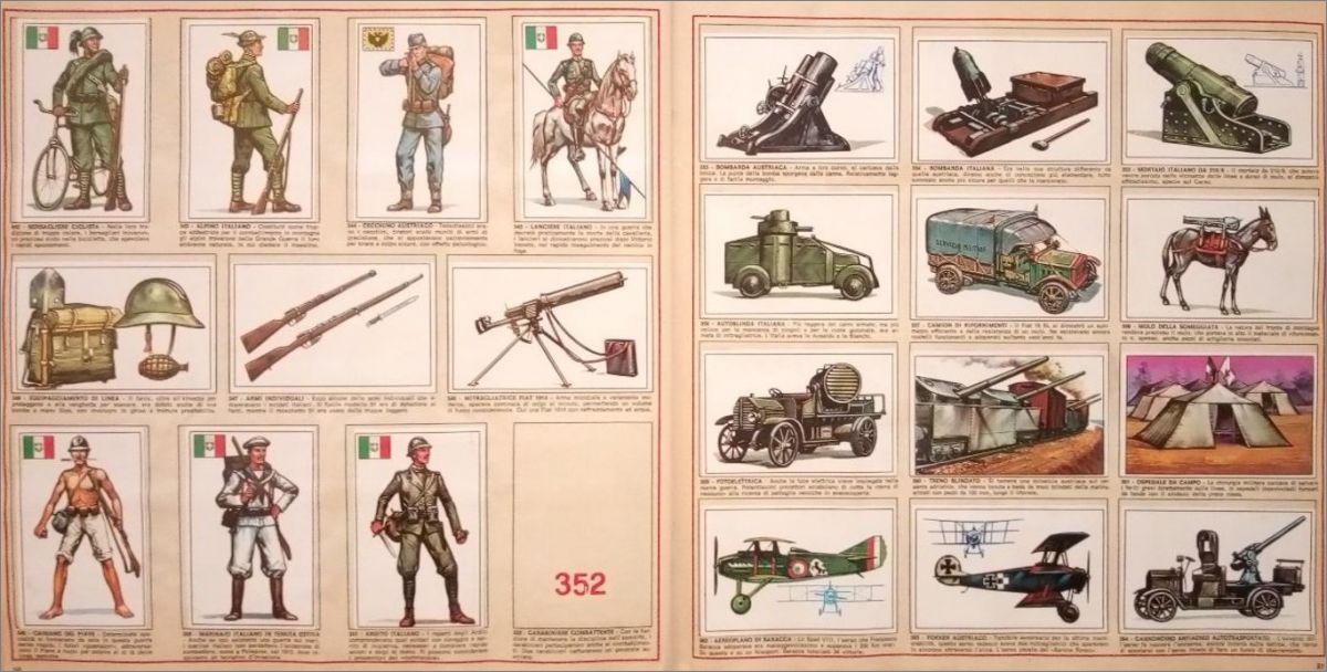 Les 464 images dites normales étaient à coller avec un tube de colle alors que les 38 qui représentent les drapeaux, blasons, décorations militaires étaient autocollantes