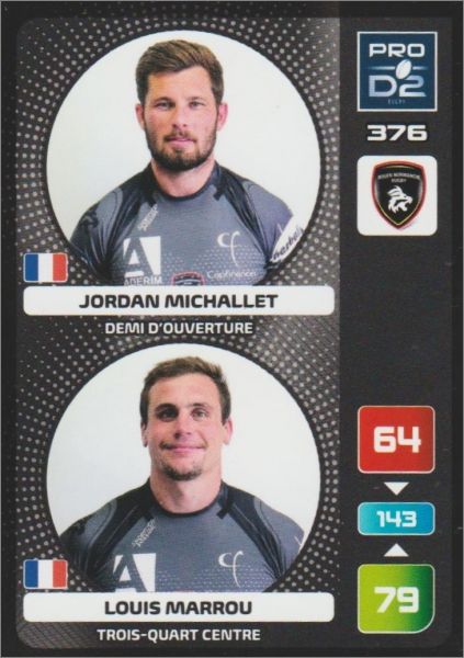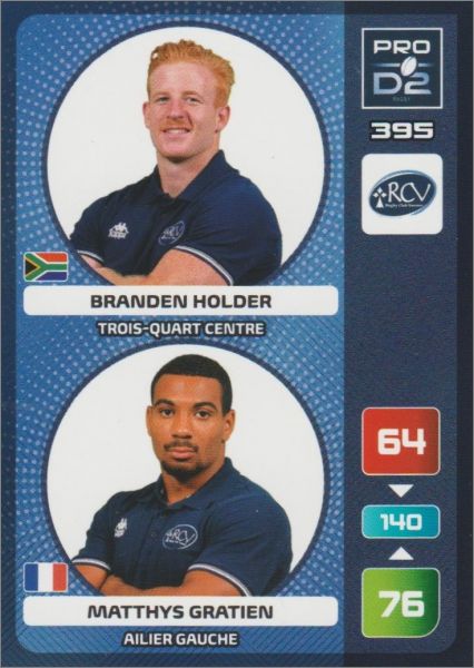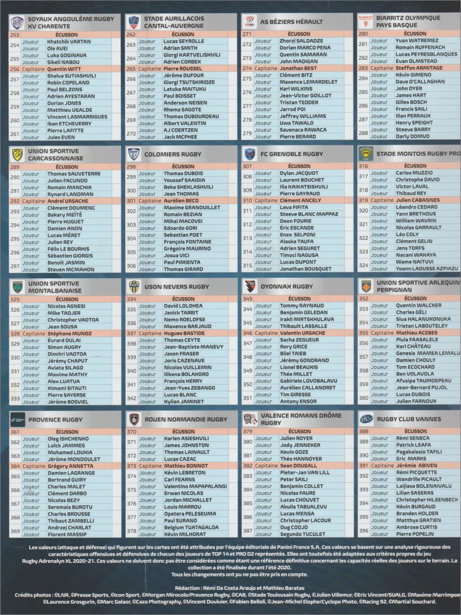 Pro D2 : 253 à 396 (hormis l'écusson et le capitaine, 2 joueurs par carte)