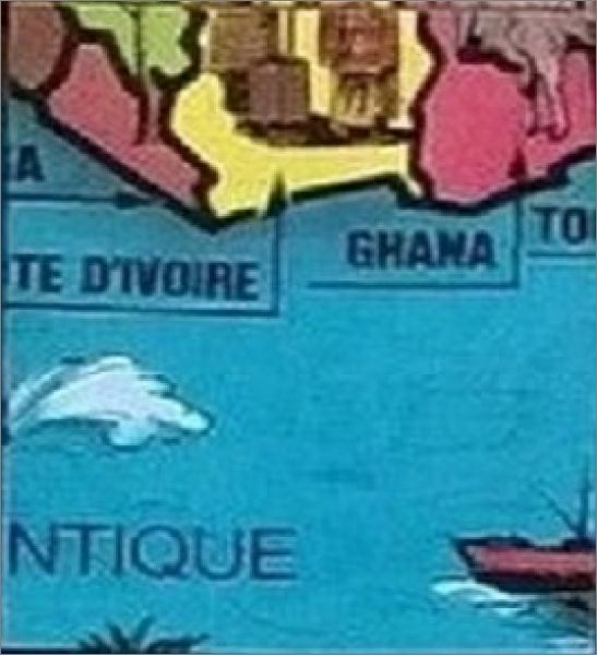 Images de Tarzan au recto et le verso reproduit la carte d'Afrique et de ses animaux