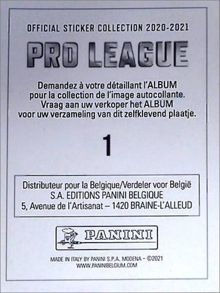 Football Pro League 2021 - Partie 1 - Album Panini Belgique