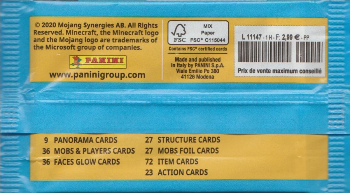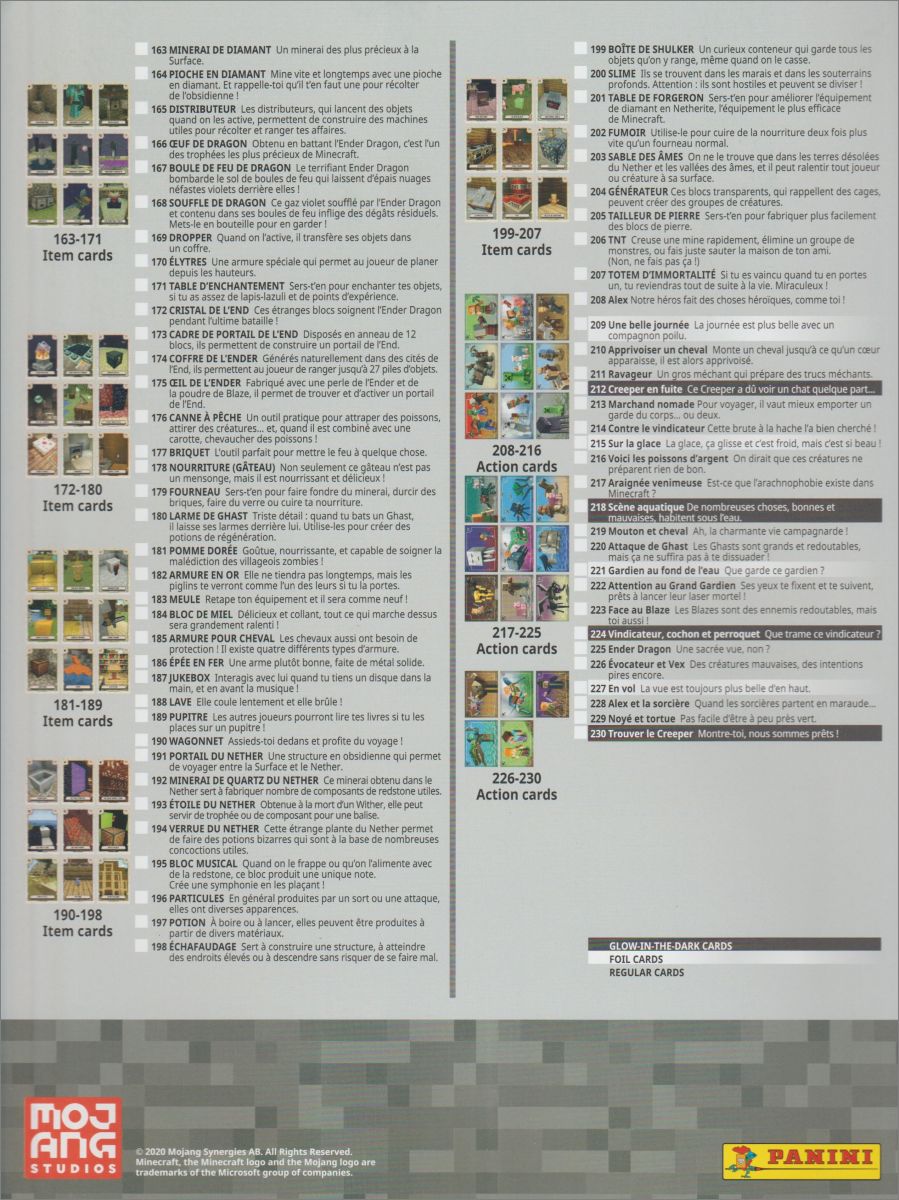 27 : Mobs Foil cards (brillantes)72 : Item cards