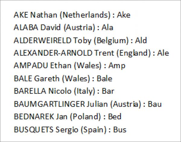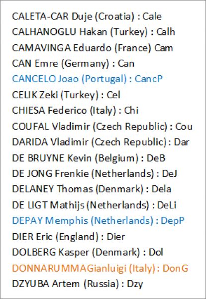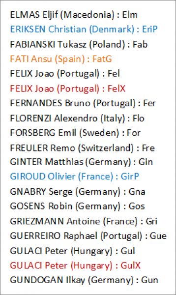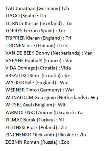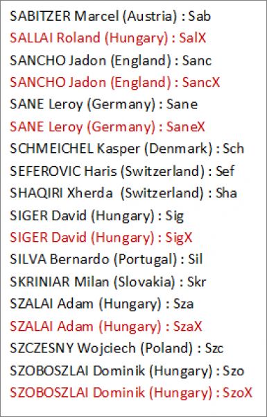 Cartes éditions Limitées *lim : Ake, Ala, Ald, Ale, Amp, Bale, Bar, Bau, Bed, Bus, Cale, Calh, Cam, Can, CancP, Cel, Chi, Cou, Dar, DeB, DeJ, Dela, DeLi, DepP, Dier, Dol, DonG, Dzy, Elm, EriP, Fab, FatG, Fel, FelX, Fer, Flo, For, Fre, Gin, GirP, Gna, Gos, Gri, Gue, Gul, GulX, Gun, Ham, Hav, Hen, Her, HolX, Hra, Ins, Isak, Jam, Jor, Kad, KalX, Kane, Kean, Keh, Kim, Kja, Kon, Kov, Kud, Kul, Lang, Lew, Linde, LinD, LinF, LinS, Lob, Luk, MagP, Mar, Mba, MbaX, McG, McT, MerP, MilP, ModG, Mou, Mus, NagyX, NikX, Orb, OrbX, Pan, Pas, Per, Pia, Pog, Puk, Ramo, RamsP, Ras, Ron, RonX, RosX, Sab, SalX, Sanc, SancX, Sane, SaneX, Sch, Sef, Sha, Sig, SigX, Sil, Skr, Sza, SzaX, Szc, Szo, szoX, Tah, Tia, Tie, Tor, Tri, Uro, Van, Var, Vida, Vrs, Wal, Ver, Wij, Wit, Yar, Yil, Zie, Zin, Zob