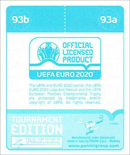UEFA Euro 2020 Tournament Edition Turquoise Panini 1/2