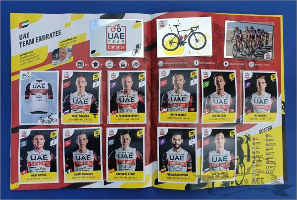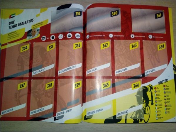Pour chacune des 21 étapes du Tour de Franced, on retrouvera une page regroupant de nombreuses informations, un souvenir historique et de magnifiques panoramas en lien direct avec les villes traversées ! Enfin, les 23 équipes sont bien évidemment toutes de la partie avec, pour chaque équipe, 14 stickers à collectionner : 10 coureurs, un logo, un maillot, un vélo et une photo de groupe.