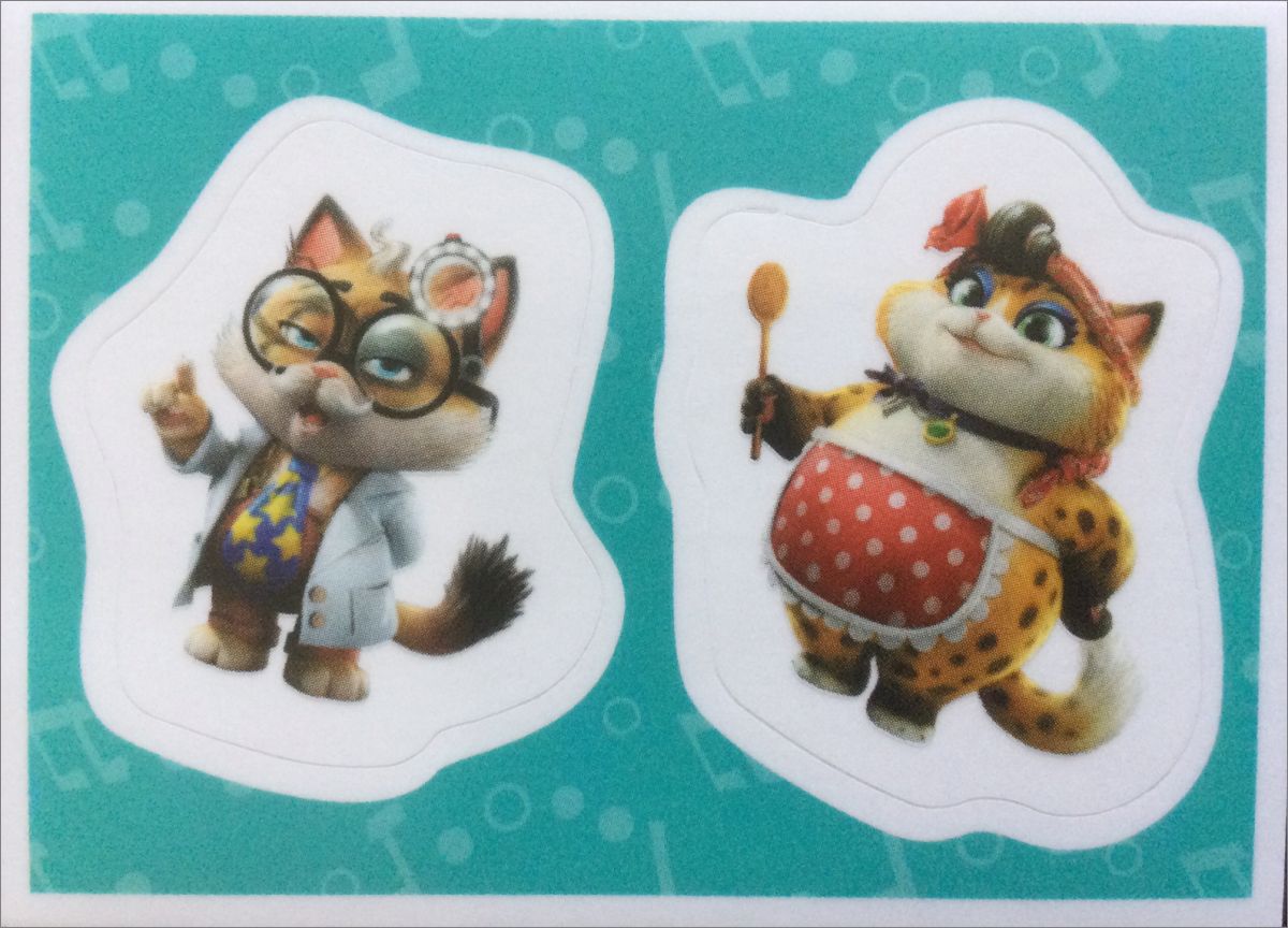 Au dos, vous pouvez coller les stickers spéciaux (G1 à G4) à votre guise pour créer de nombreuses histoires de chats.