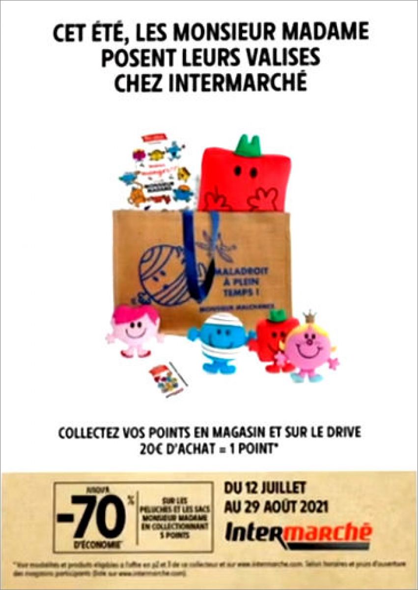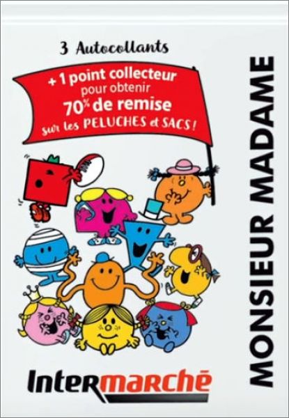 1 pochette = 3 stickers + 1 point Collecteur (Donne 70% de remise sur les peluches et sacs Monsieur Madame)