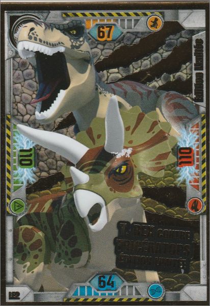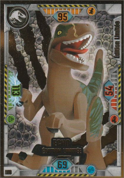2 Eco Blisters (4,99 €) comprenant 5 pochettes de 5 cartes et une carte en édition limitée : LE6 (Allosaurus contre Dino-Mech) et , une version avec une carte LE7 (Owen Grady & Blue)
