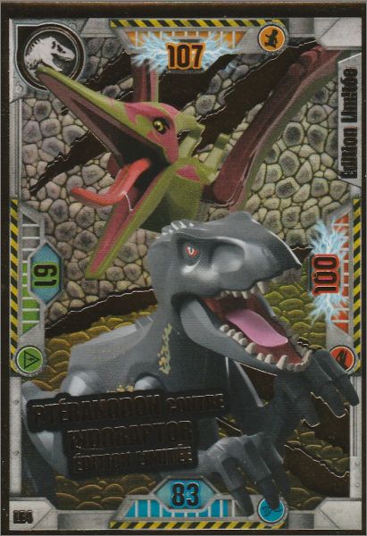 Quatre multi-packs (4,99 €) contenant 5 boosters de 5 cartes et une carte en édition limitée : une version avec la carte LE2 (T.rex contre Tricératops), une version avec une carte LE3 (Carnotaurus contre Stygimoloch) une version avec une carte LE4 (Ptéranodon contre Indoraptor) et une version avec une carte LE5 (Baryonyx).