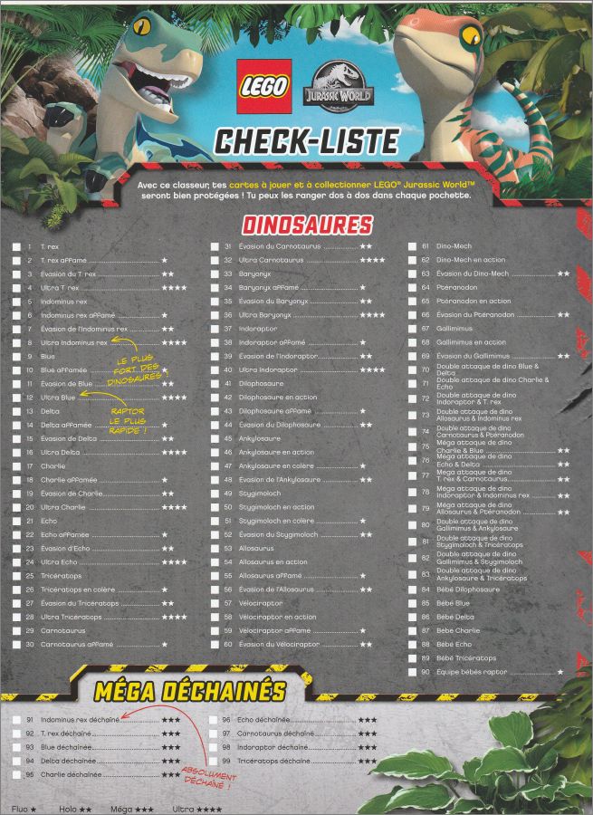 Cartes Dinosaures : 1 à 90