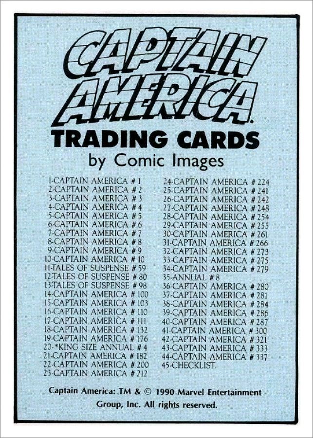 Pour connaître le numéro de la carte de collection, il faut se référer obligatoirement à la check-list (qui est elle même une carte de la collection N°45) Le recto des cartes correspond à la page de garde d'un comics book (Voir l'exemple)
