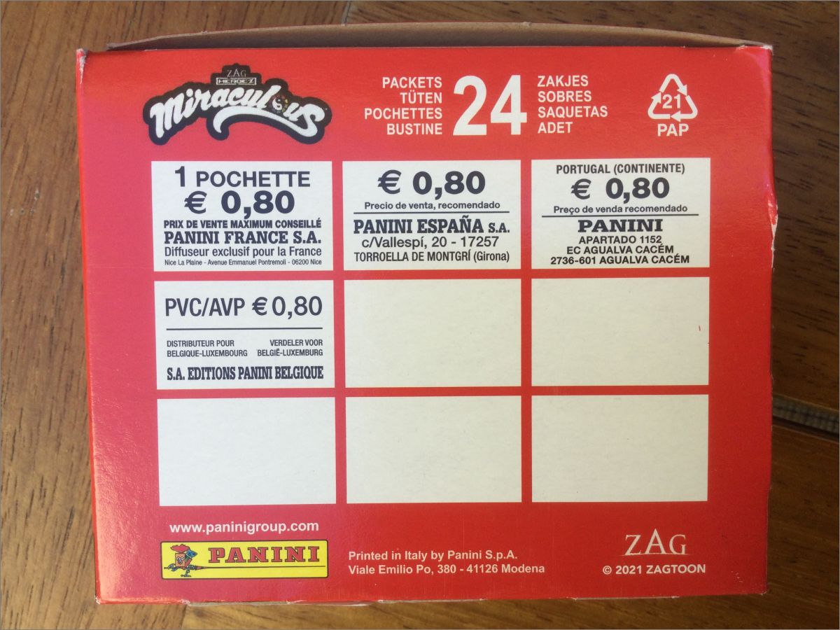 - Box 24 pochettes: 19.20€