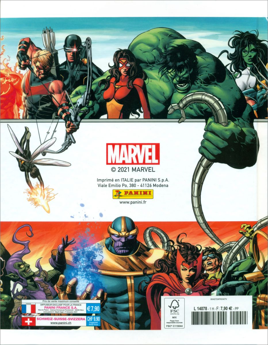 Complète ton album autour des rivalités les plus iconiques de l'Univers Marvel avec les 176 stickers, dont 24 stickers argentés, et 16 incroyables stickers phosphorescents. Il y a aussi 50 cartes à collectionner dans le range-cartes offert dans l'album.