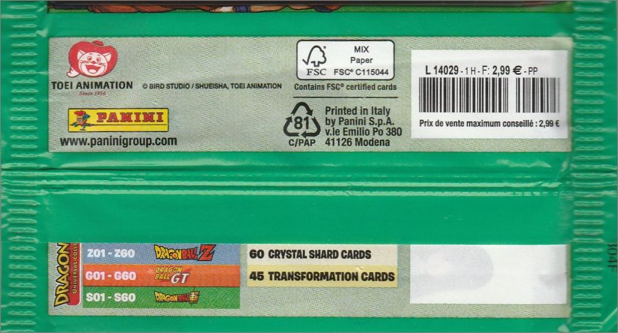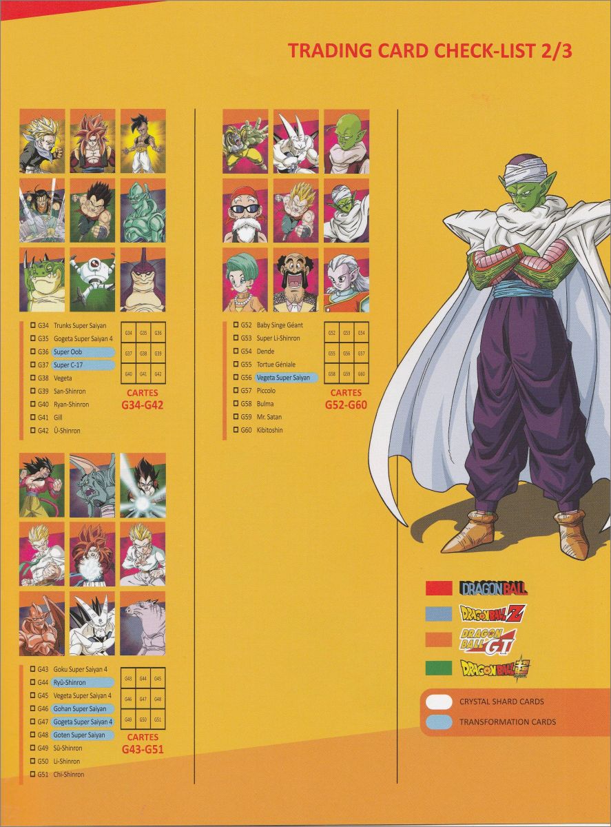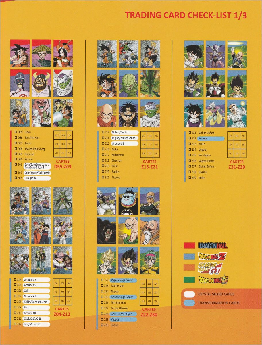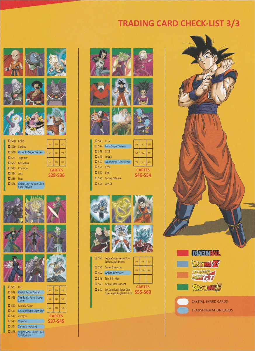 C'est au total 240 Trading Cards qui sont à collectionner dont 60 cartes holographiques, ainsi que 7 cartes en Édition Limitée réunissant Dragon Ball, Dragon Ball Z, Dragon Ball GT et Dragon Ball Super