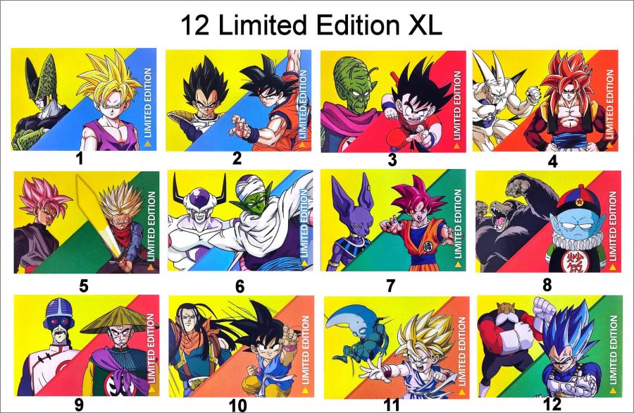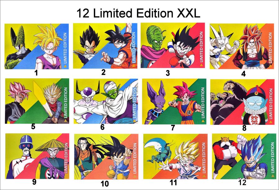 Avec le bundle XXL, tu reçois un total de 168 cartes de la collection Dragon Ball Universal Trading Cards + les 12 cartes XXL Limited Edition.