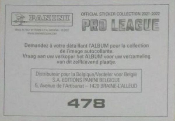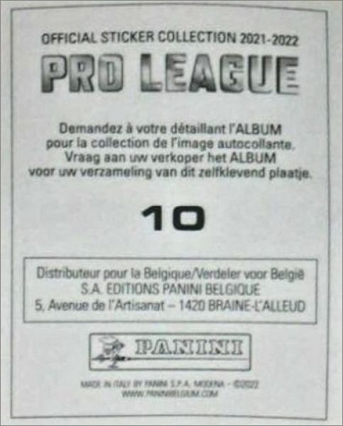Football Pro League 2022 - Partie 2 - Album Panini BelgiqueListe des spéciales :
