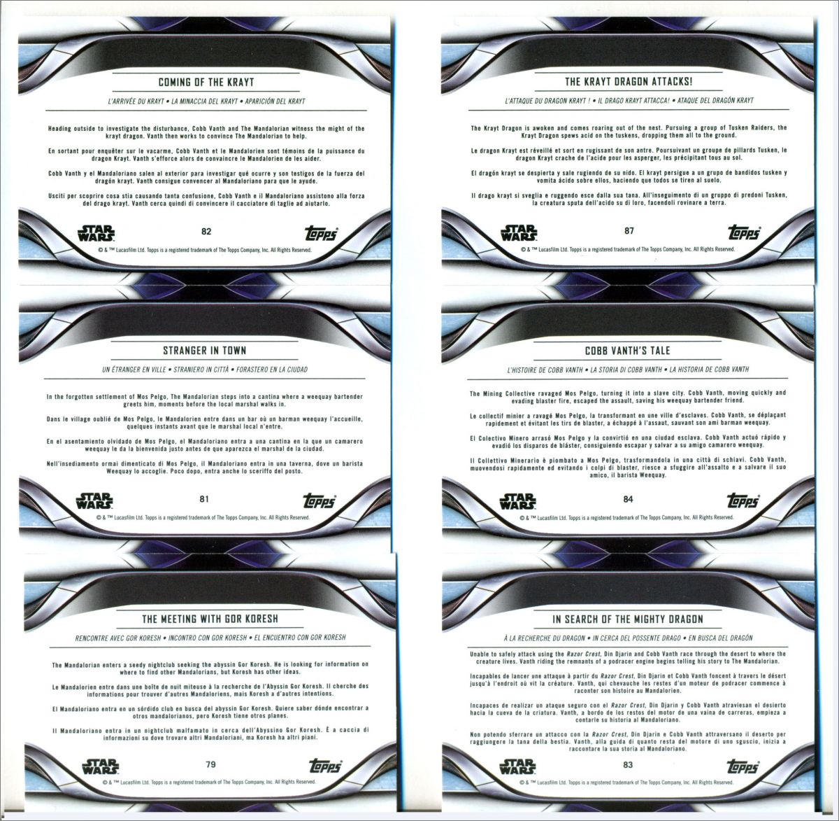 Pour les cartes sorties en éditions parallèles dans les autres coloris (et en édition limitée) voir la fiche : Star Wars The Mandalorian Trading Cards part 2 Topps - 2021