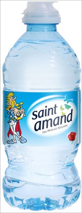 Collection de 20 étiquettes sur les bouteilles d'eau de la marque Saint Amand.