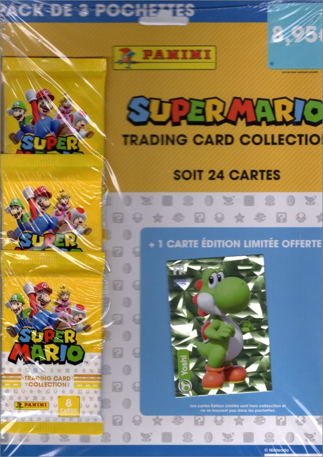 Pack de 3 pochettes (soit 24 cartes) + 1 limitée (Yoshi) : 8.95€