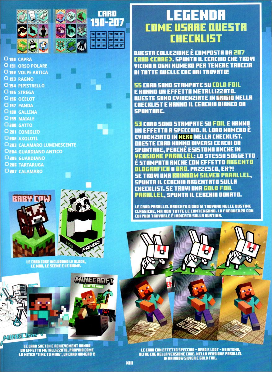 Panini : 1 à 207, R2 à R54 (Rainbow), G2 à G54 (Gold), P2 à P54 (Paillette), CC2 à CC54 + LE1 à LE8 (Limited Edition)