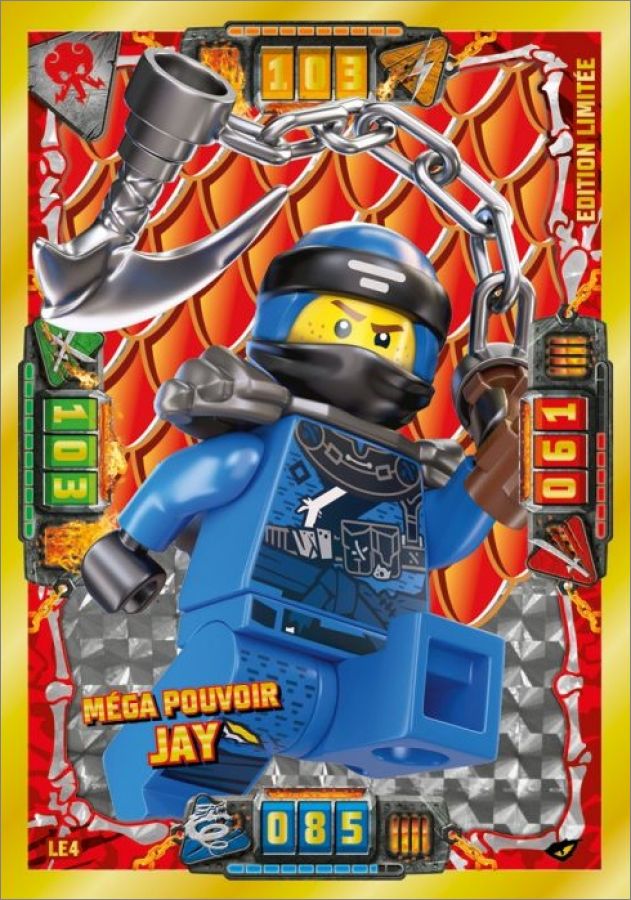 La carte LE4 Mega Pouvoir Jay (correspondant à la LE6 allemande) était en cadeau avec le magazine Lego Ninjago Legacy Plus n°4.