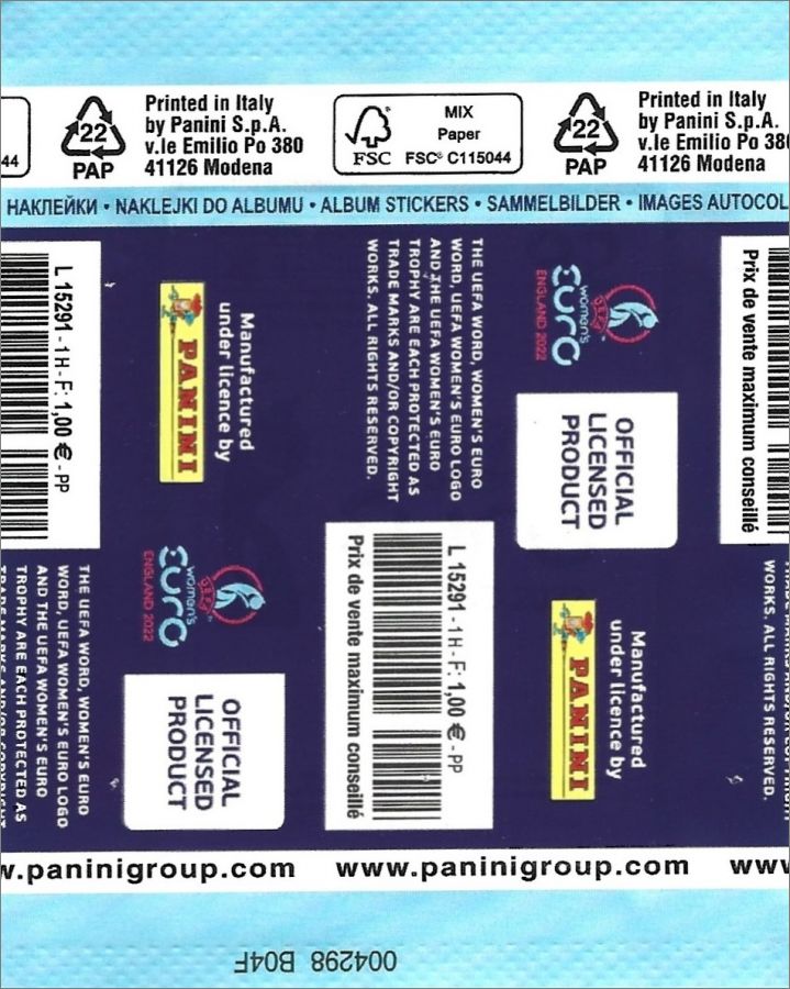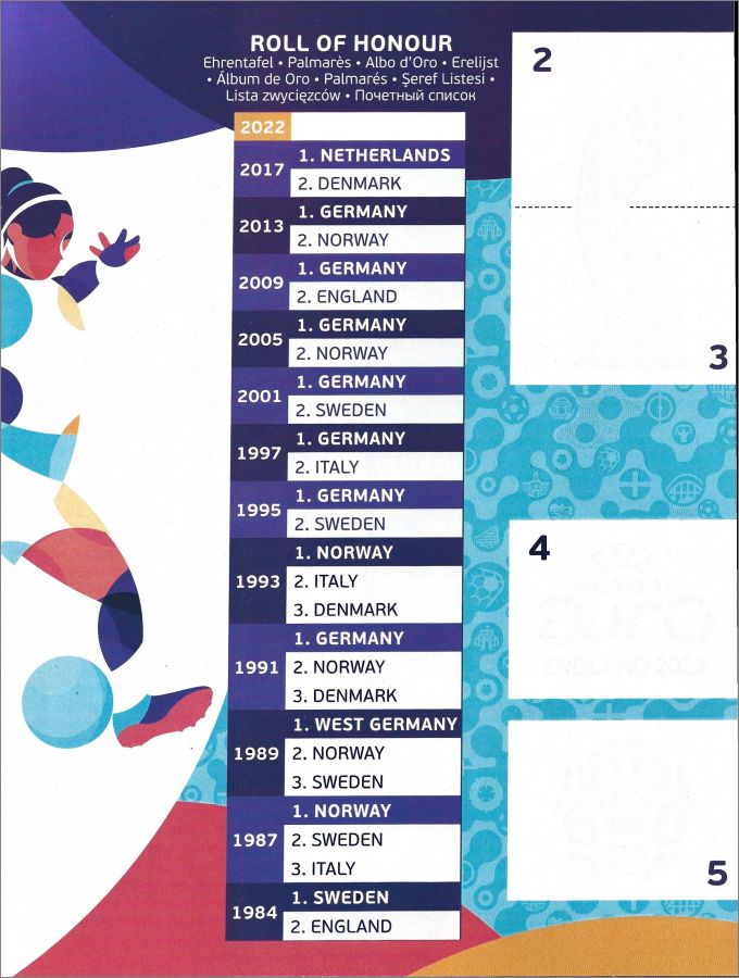 L'équipe russe initialement qualifiée pour l'UEFA Women's EURO 2022 est exclue de toutes les compétitions de l'UEFA jusqu'à nouvel ordre et l'UEFA a donc désigné le Portugal comme remplaçant début mai. Comme la production de l'album et des autocollants a commencé avant cette date, les pochettes d'autocollants ne contiennent que les autocollants des 15 équipes déjà connues auparavant et l'album comporte une page d'espace réservé pour la 16e équipe du Portugal.