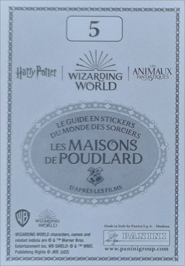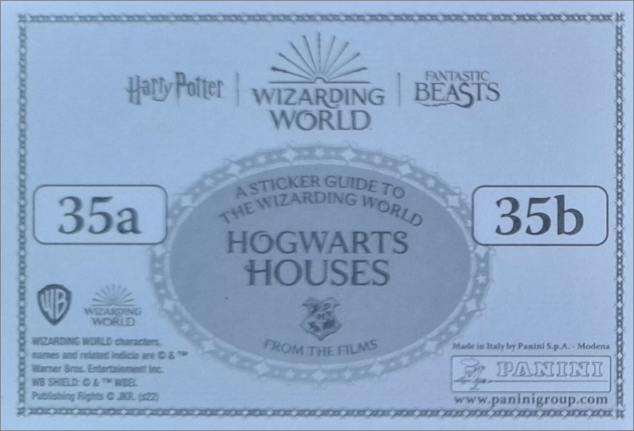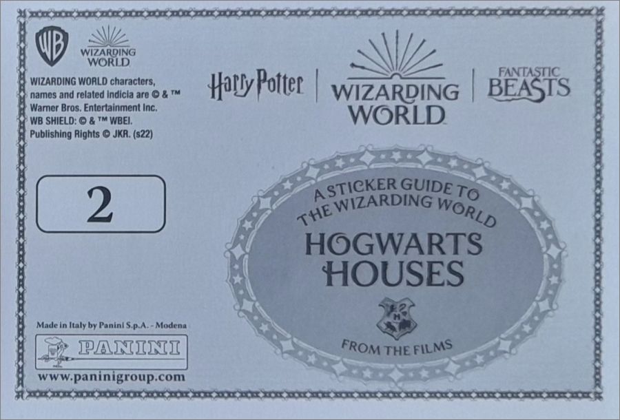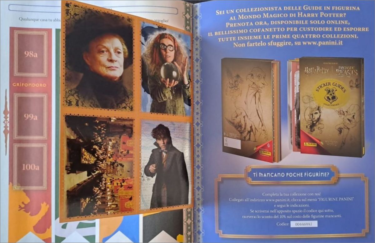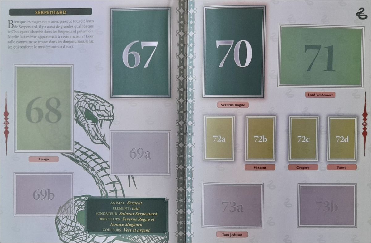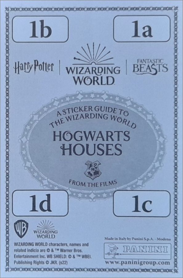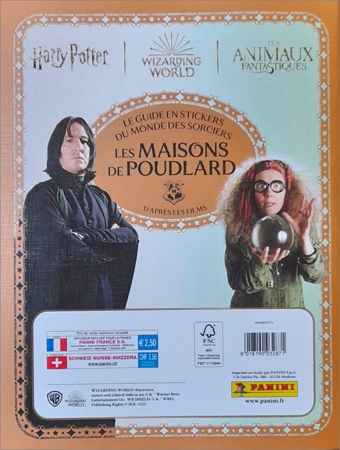 Lien vers l'album n°2 - Harry Potter Magische Kreaturen Lien vers l'album n°3 - Harry Potter Il Castello di HogwartsLien vers l'album n°4 - Harry Potter Famiglie Magiche e Babbane Collection de 100 stickers mais en comptant les images a, b ou a,b,c,d nous arrivons a 200.